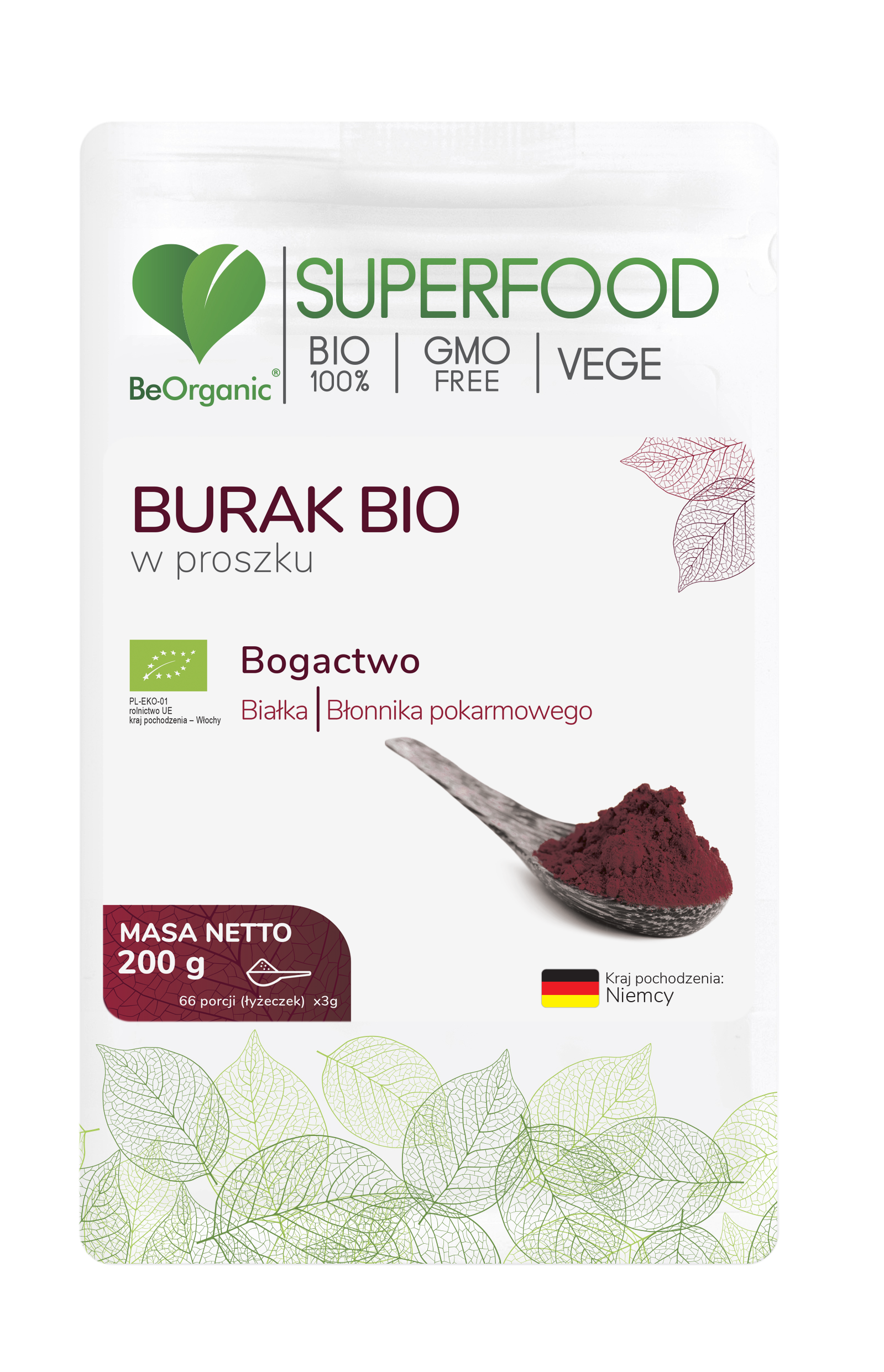 Składniki: Burak sproszkowany BIO (Beta Vulgaris) 100%.